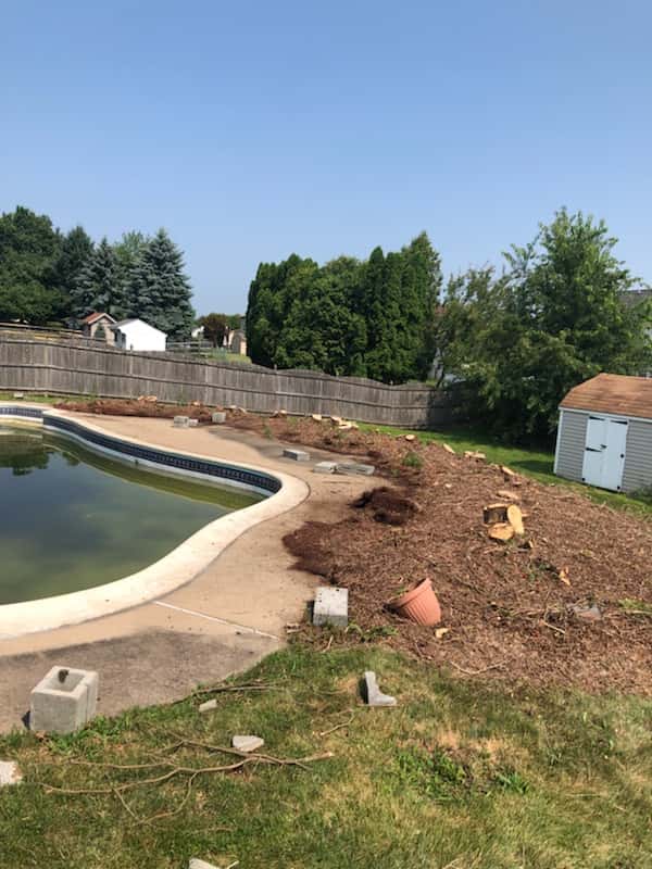 15 Arborvitae 30 feet high around a pool removed, chipped and removal of all chips and debris.
