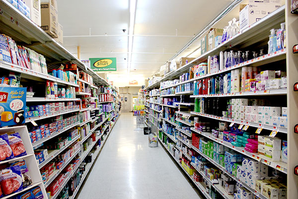 Not only does our supermarket carry food, we also carry a variety of daily essential products. These include hardware, toothpastes, shampoos and soaps, paper products like napkins and paper towels, and cleaning products.